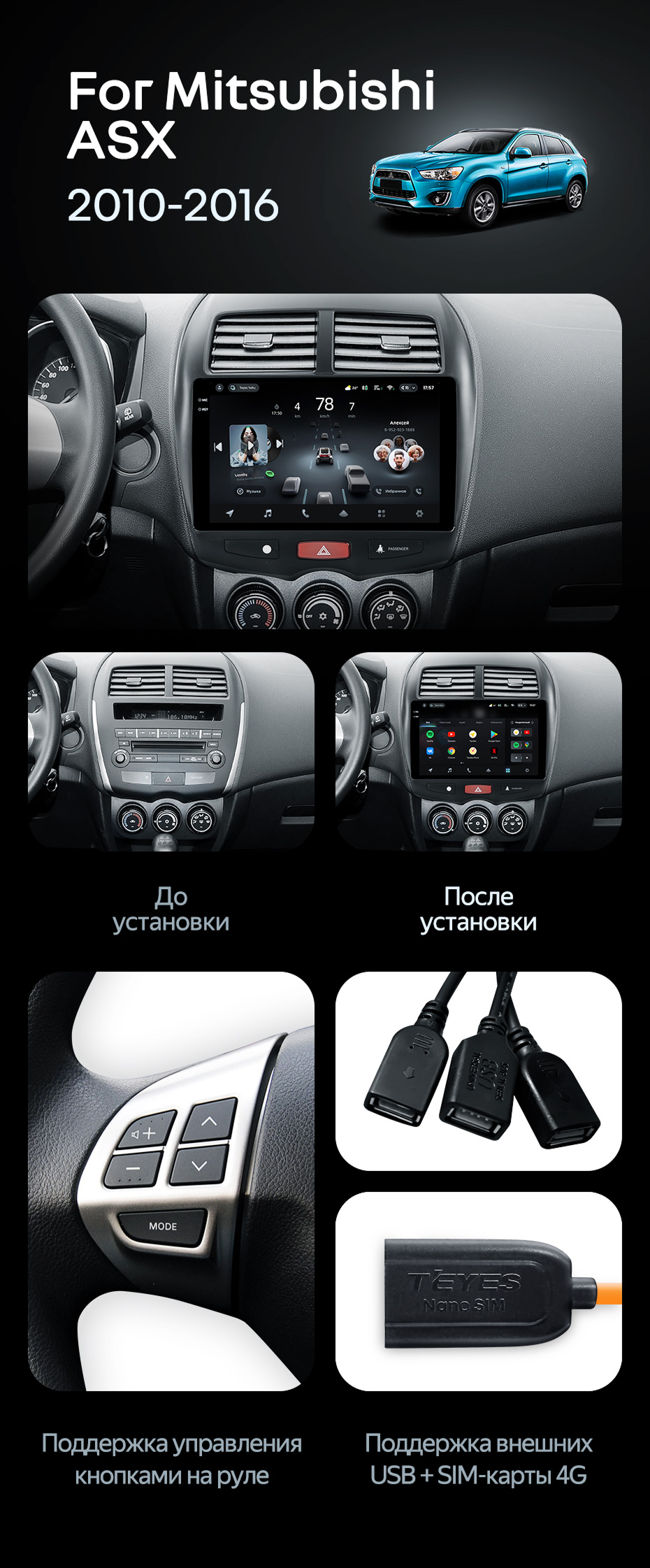 Штатная магнитола Teyes CC4 Pro 12/256 Mitsubishi ASX 1 (2010-2016) Тип-A - купить всего за 65 690 руб. в интернет-магазине в Тамбове Teyes.com.ru. ✓ Самый лучший выбор мультимедиа ✓ Лучшая замена штатному ГУ ✓ Тел. +7 (800) 775-31-74