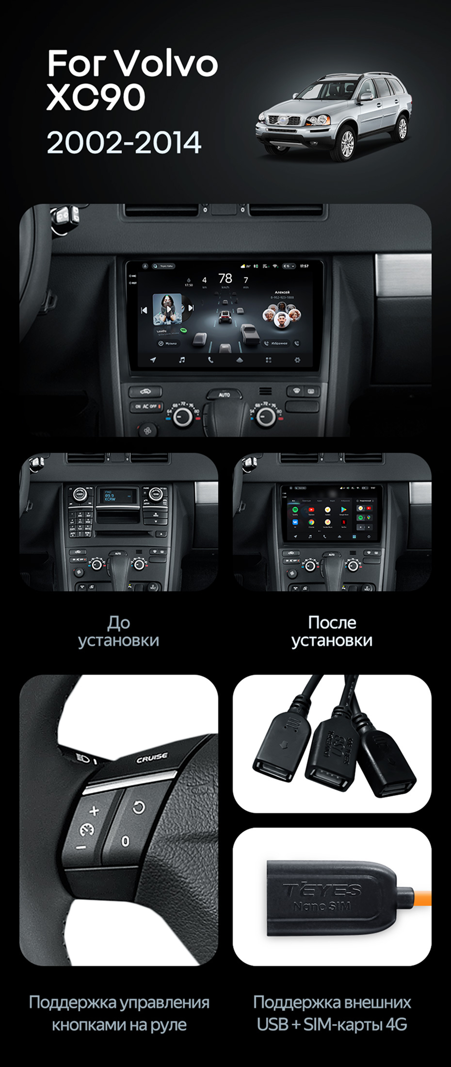 Штатная магнитола Teyes CC4 Pro 12/256 Volvo XC90 (2007-2014) F2 (комплект для установки нижней части) - купить всего за 71 760 руб. в интернет-магазине в Тамбове Teyes.com.ru. ✓ Самый лучший выбор мультимедиа ✓ Лучшая замена штатному ГУ ✓ Тел. +7 (800) 775-31-74