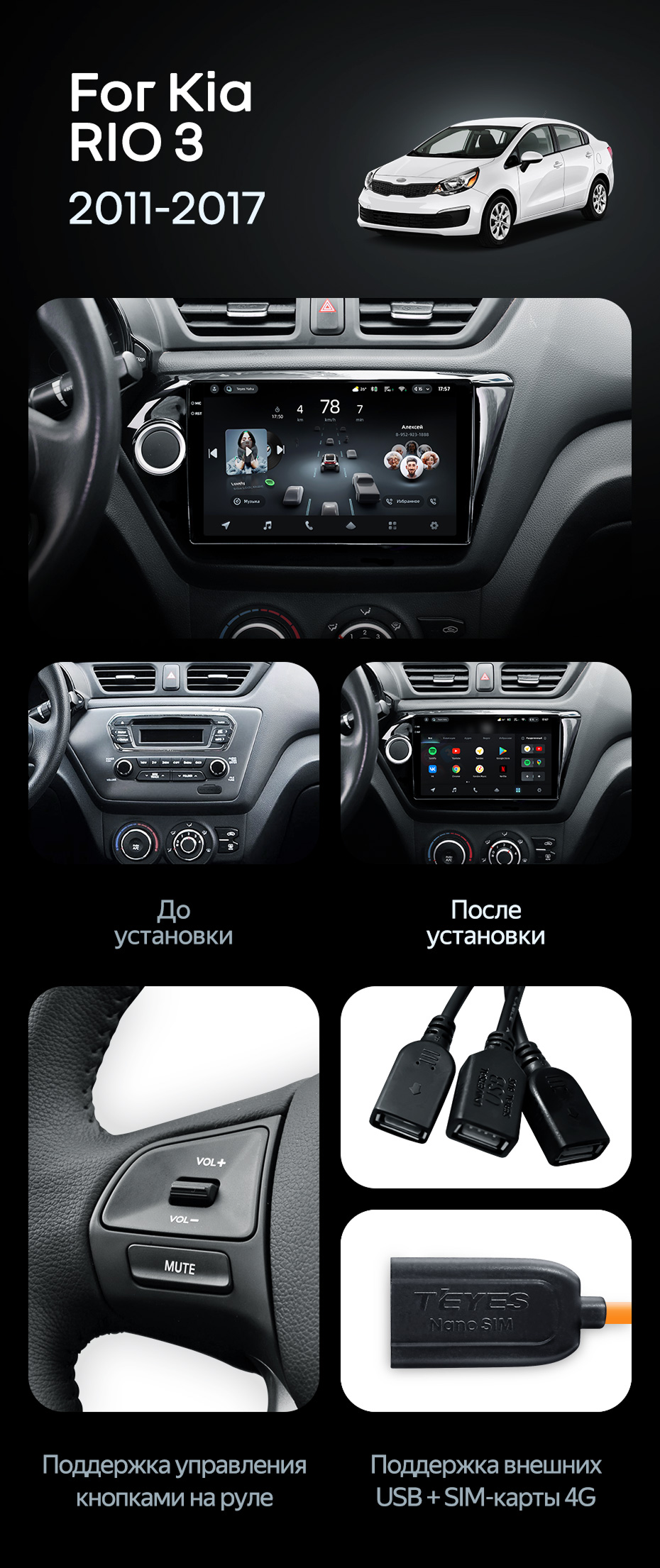 Штатная магнитола Teyes CC4 Pro 8/128 Kia Rio 3 (2011-2017) (13") - купить всего за 67 010 руб. в интернет-магазине в Тамбове Teyes.com.ru. ✓ Самый лучший выбор мультимедиа ✓ Лучшая замена штатному ГУ ✓ Тел. +7 (800) 775-31-74