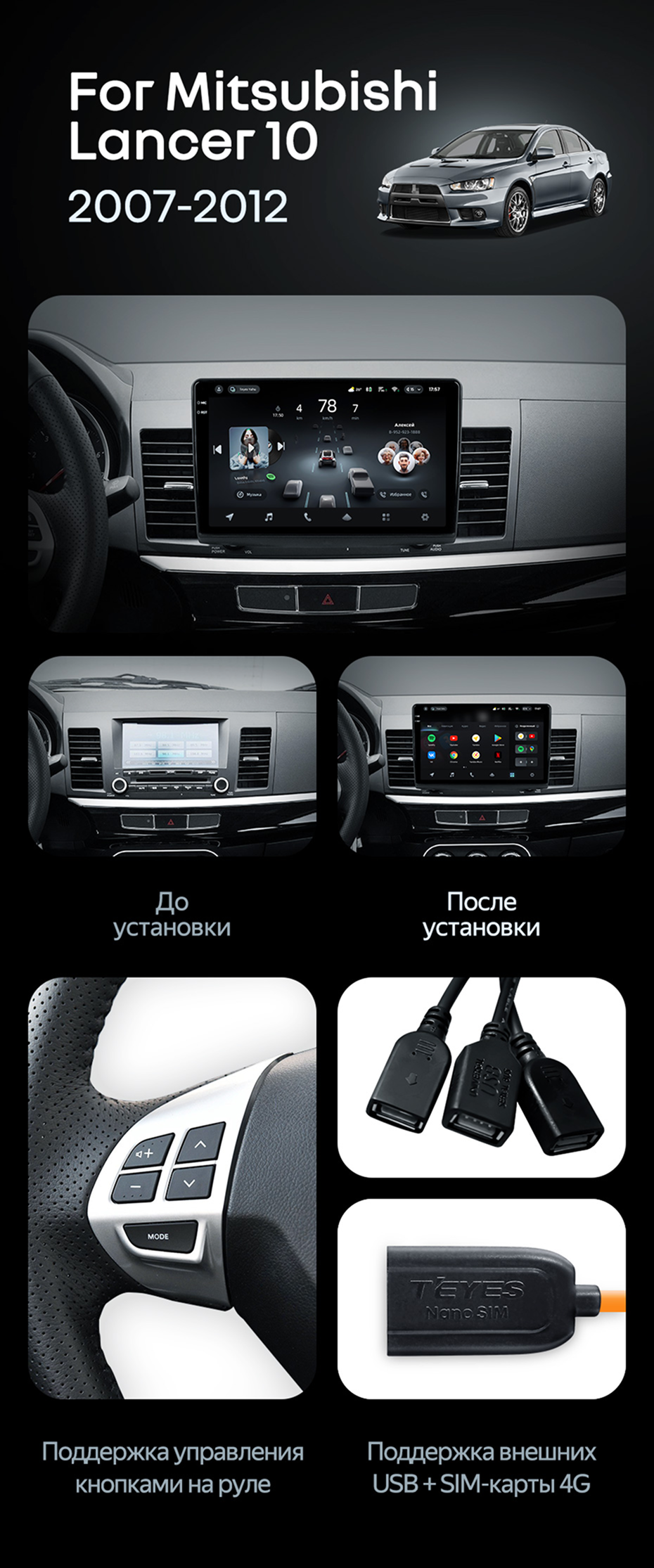 Штатная магнитола Teyes CC4 Pro 8/128 Mitsubishi Lancer 10 CY (2007-2012) Тип-B - купить всего за 56 400 руб. в интернет-магазине в Тамбове Teyes.com.ru. ✓ Самый лучший выбор мультимедиа ✓ Лучшая замена штатному ГУ ✓ Тел. +7 (800) 775-31-74