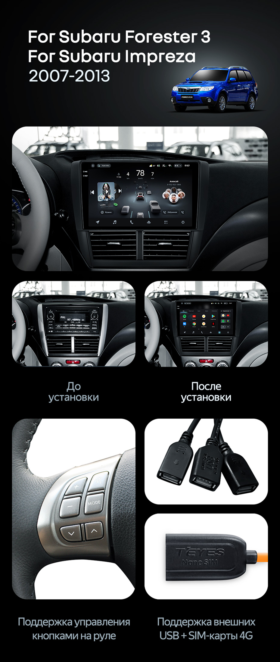 Штатная магнитола Teyes CC4 Pro 8/128 Subaru Forester 3 SH (2007-2013) - купить всего за 58 000 руб. в интернет-магазине в Тамбове Teyes.com.ru. ✓ Самый лучший выбор мультимедиа ✓ Лучшая замена штатному ГУ ✓ Тел. +7 (800) 775-31-74