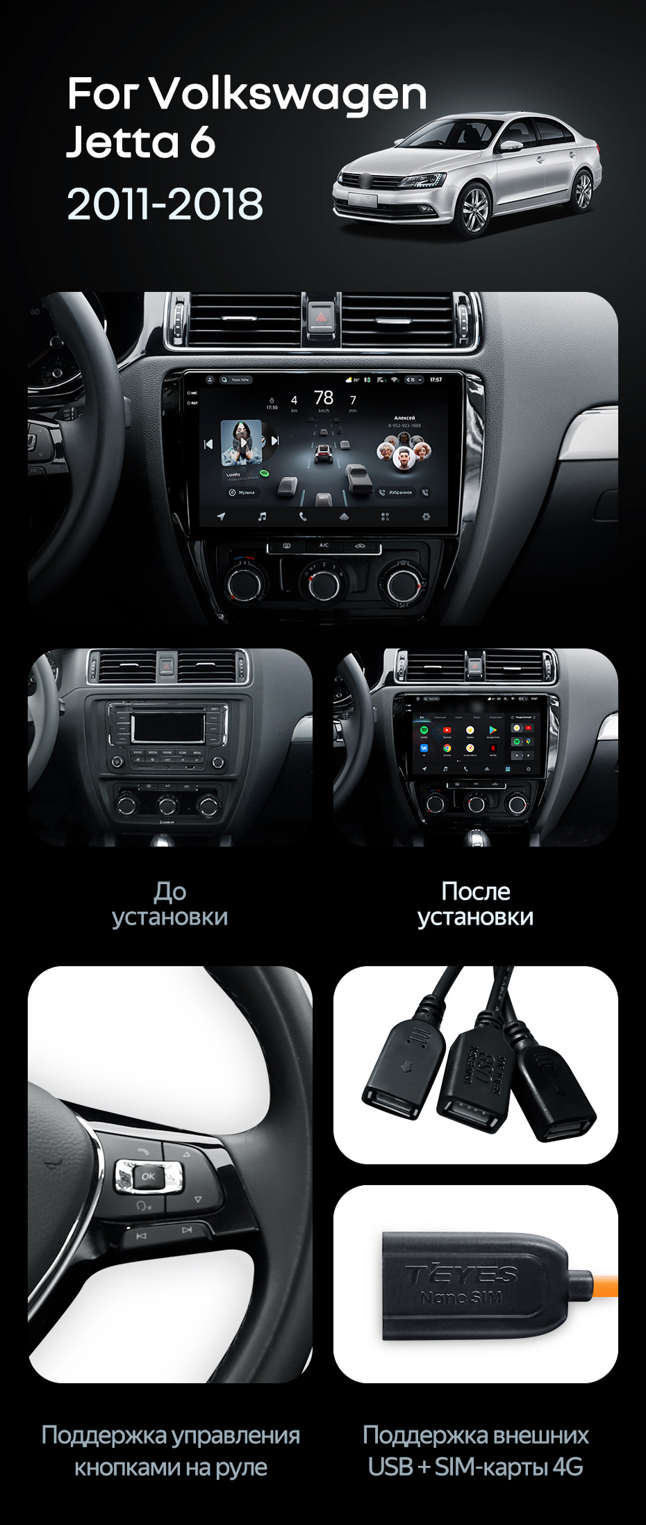 Штатная магнитола Teyes CC4 Pro 8/128 Volkswagen Jetta 6 (2011-2018) - купить всего за 56 300 руб. в интернет-магазине в Тамбове Teyes.com.ru. ✓ Самый лучший выбор мультимедиа ✓ Лучшая замена штатному ГУ ✓ Тел. +7 (800) 775-31-74
