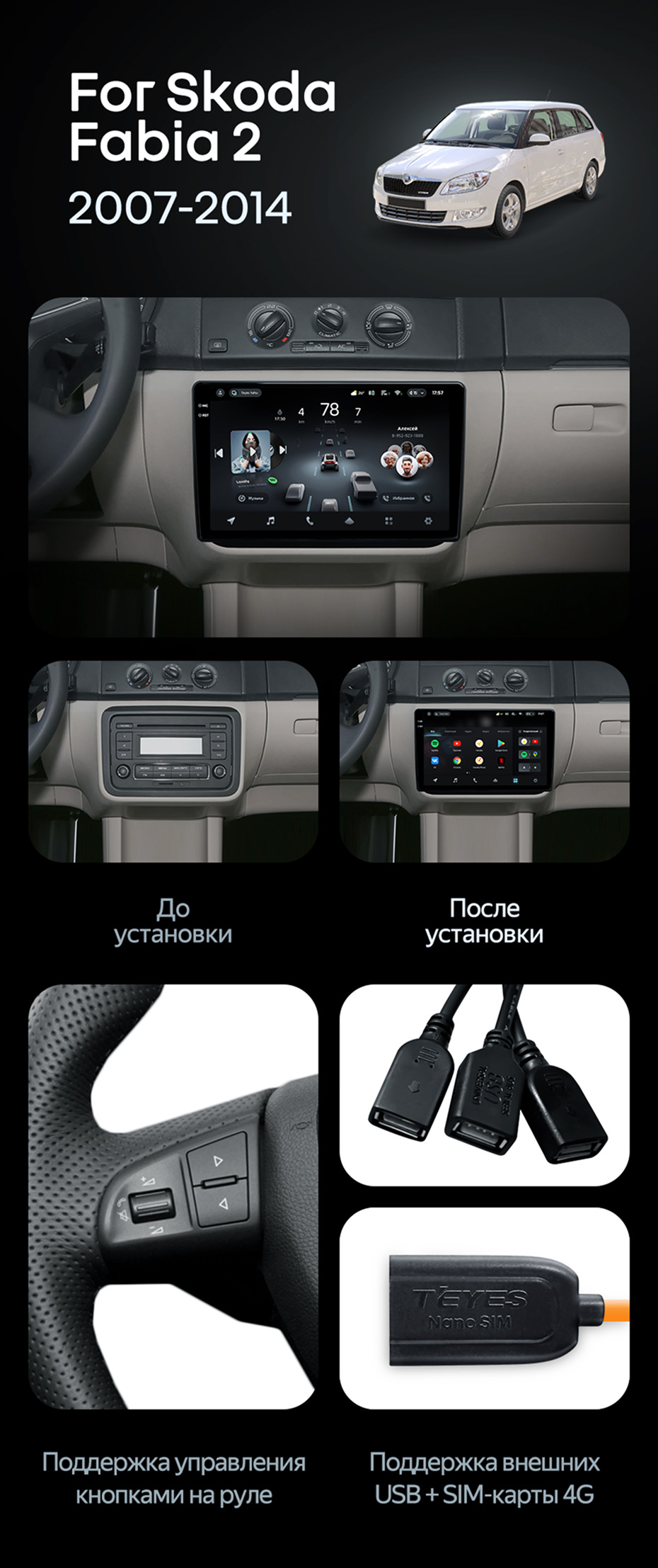 Штатная магнитола Teyes CC4L 4/64 Skoda Fabia 2 (2007-2014) - купить всего за 28 660 руб. в интернет-магазине в Тамбове Teyes.com.ru. ✓ Самый лучший выбор мультимедиа ✓ Лучшая замена штатному ГУ ✓ Тел. +7 (800) 775-31-74