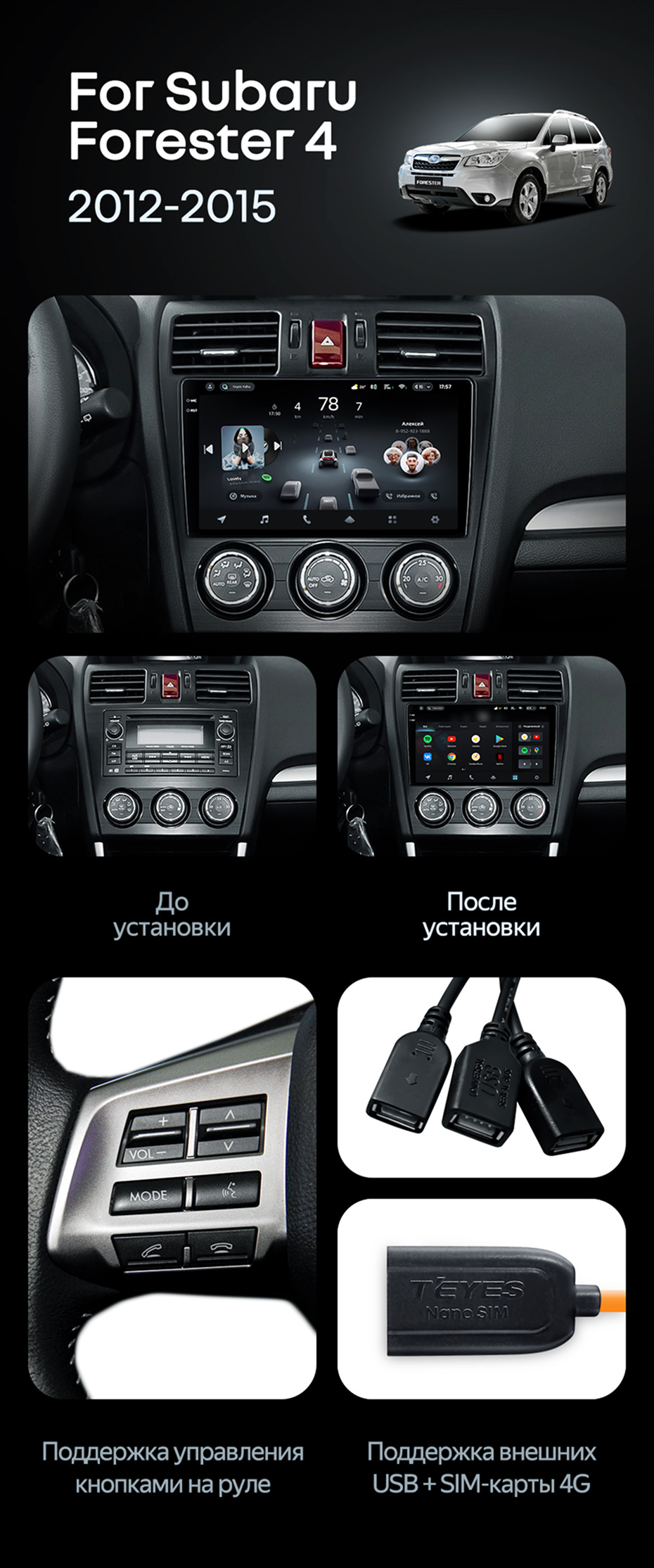 Штатная магнитола Teyes CC4L 6/64 Subaru Forester 4 SJ (2012-2015) Тип-B - купить всего за 31 890 руб. в интернет-магазине в Тамбове Teyes.com.ru. ✓ Самый лучший выбор мультимедиа ✓ Лучшая замена штатному ГУ ✓ Тел. +7 (800) 775-31-74