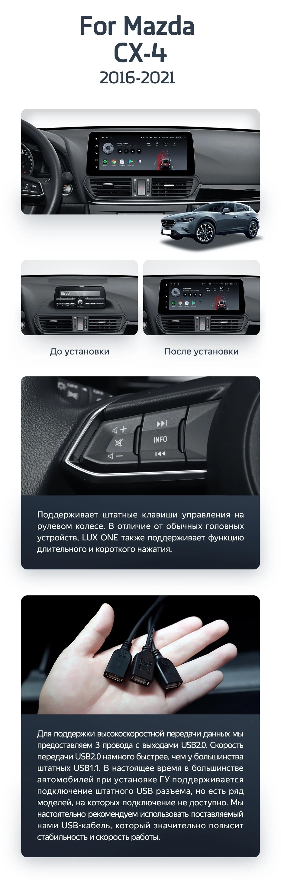 Штатная магнитола Teyes LUX ONE 360 6/128 Mazda CX-4 (2016-2021) Тип-A - купить всего за 60 600 руб. в интернет-магазине в Тамбове Teyes.com.ru. ✓ Самый лучший выбор мультимедиа ✓ Лучшая замена штатному ГУ ✓ Тел. +7 (800) 775-31-74