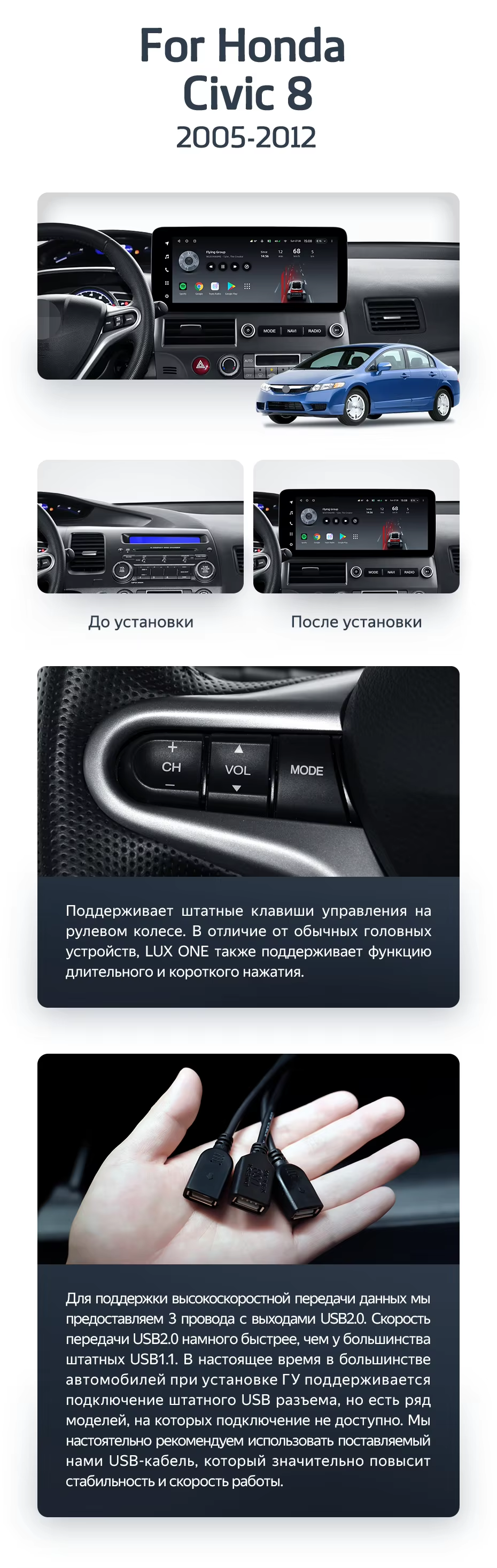 Штатная магнитола Teyes LUX ONE 4/64 Honda Civic 8 FK FN FD (2005-2012) - купить всего за 44 060 руб. в интернет-магазине в Тамбове Teyes.com.ru. ✓ Самый лучший выбор мультимедиа ✓ Лучшая замена штатному ГУ ✓ Тел. +7 (800) 775-31-74