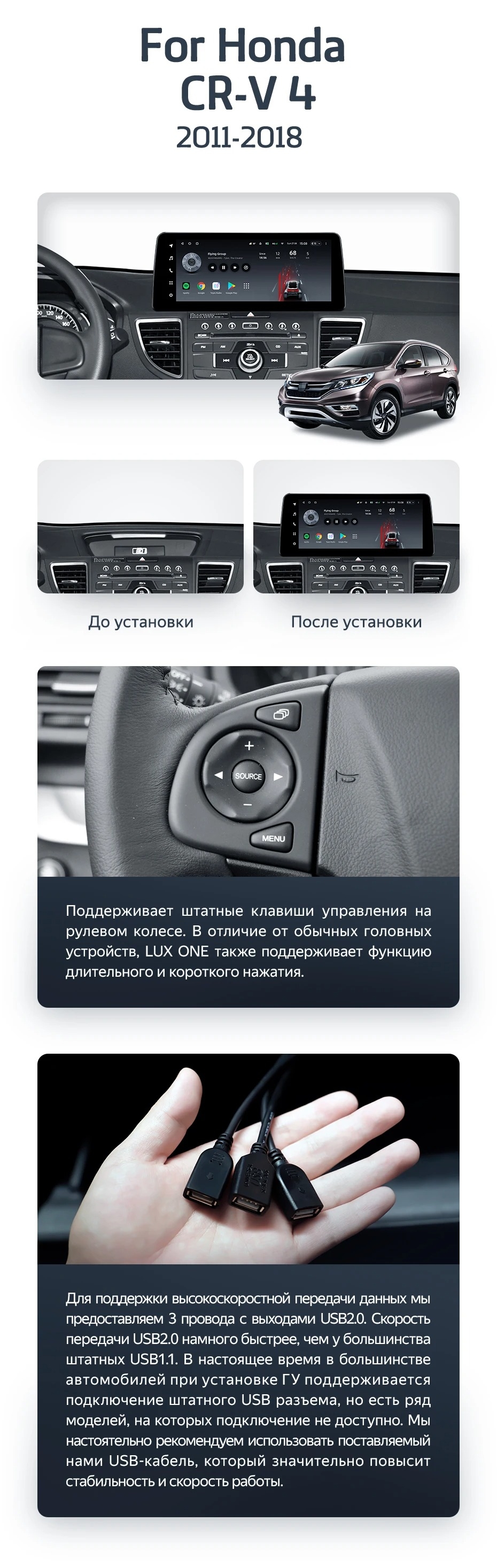 Штатная магнитола Teyes LUX ONE 6/128 Honda CR-V 4 RM RE (2011-2018) Тип-A - купить всего за 50 300 руб. в интернет-магазине в Тамбове Teyes.com.ru. ✓ Самый лучший выбор мультимедиа ✓ Лучшая замена штатному ГУ ✓ Тел. +7 (800) 775-31-74