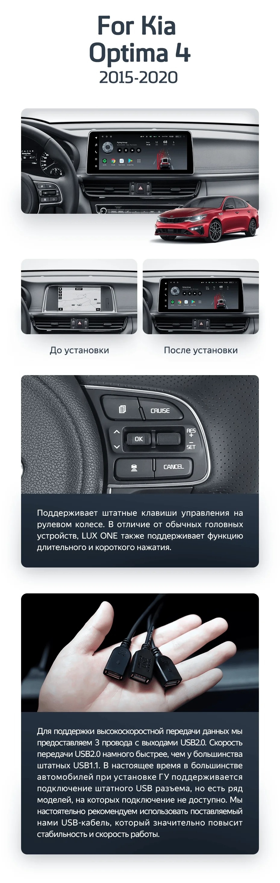 Штатная магнитола Teyes LUX ONE 6/128 Kia Optima 4 JF (2015-2020) Тип-B - купить всего за 48 300 руб. в интернет-магазине в Тамбове Teyes.com.ru. ✓ Самый лучший выбор мультимедиа ✓ Лучшая замена штатному ГУ ✓ Тел. +7 (800) 775-31-74