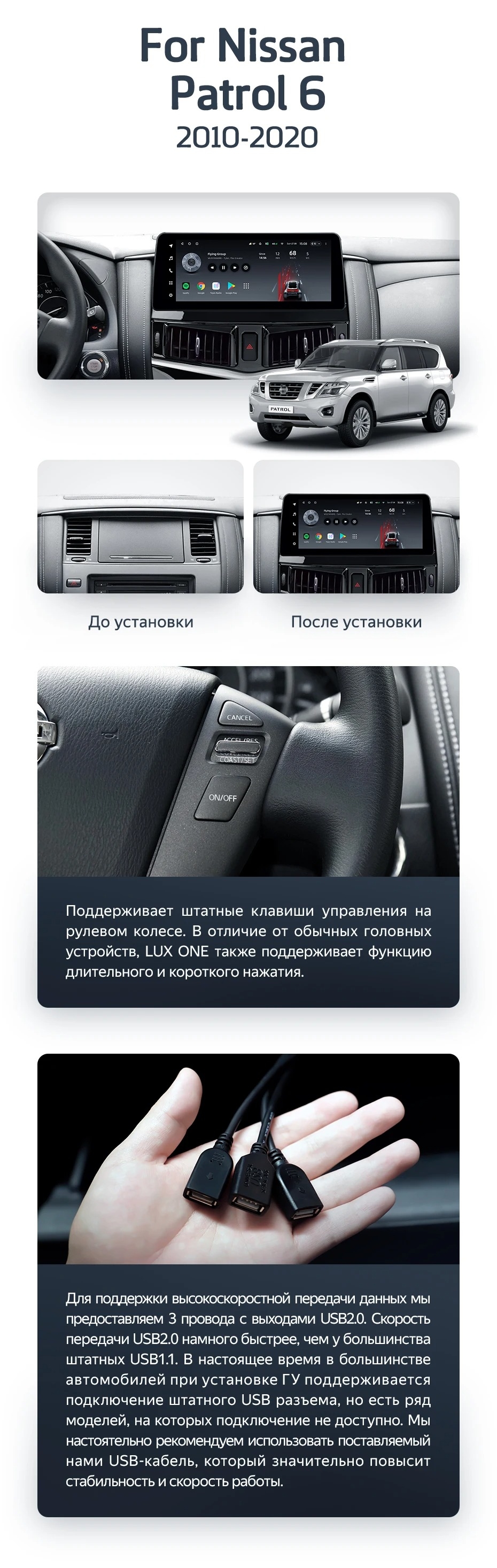Штатная магнитола Teyes LUX ONE 6/128 Nissan Patrol 6 Y62 (2010-2020) - купить всего за 52 900 руб. в интернет-магазине в Тамбове Teyes.com.ru. ✓ Самый лучший выбор мультимедиа ✓ Лучшая замена штатному ГУ ✓ Тел. +7 (800) 775-31-74