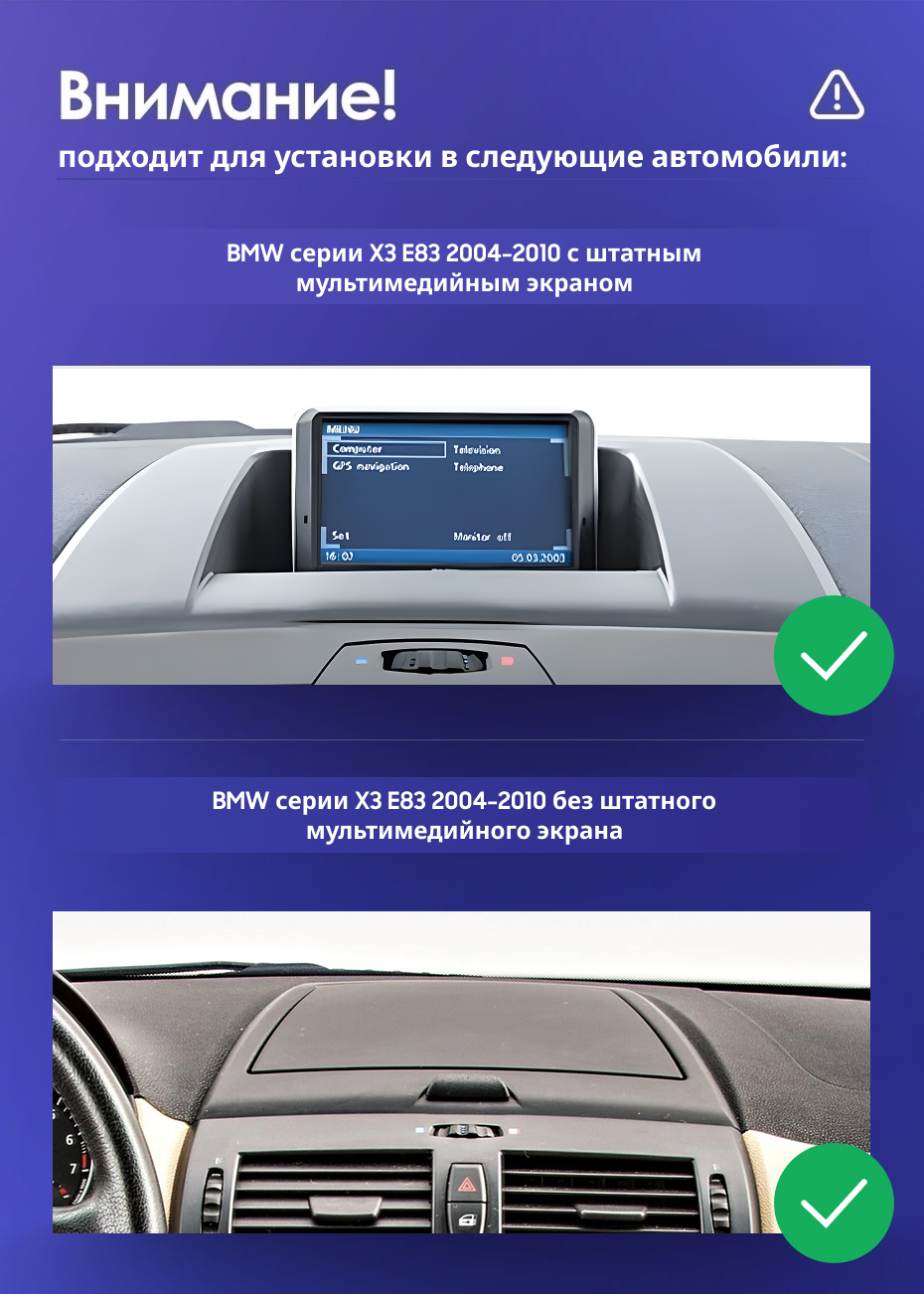 Полный комплект установки магнитолы Teyes с рамкой и проводкой можно выбрать в каталоге штатных магнитол BMW X3 E83 (CCC) (2003-2011).