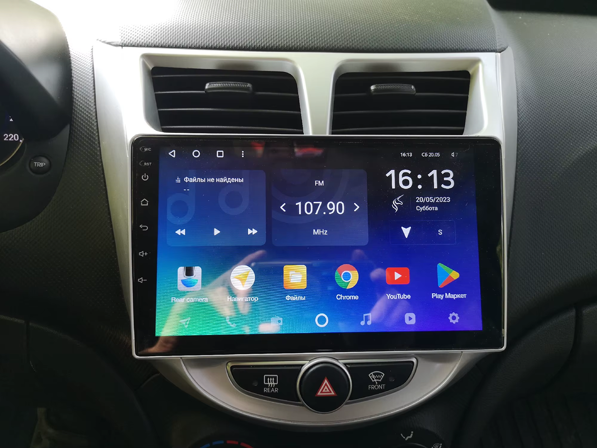 Готовый установочный комплект для магнитолы Hyundai Solaris 1 (2010-2017) (черный матовый) 9 дюймов в штатное место, включает переходную рамку и проводку.